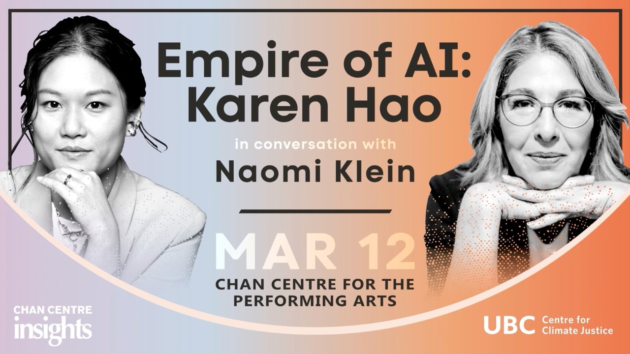 For this urgent conversation, Hao will be joined by Naomi Klein, the award-winning author of international bestsellers including This Changes Everything, The Shock Doctrine, No Logo, and Doppelganger. Klein is an associate professor in UBC’s department of geography, founding codirector of the Centre for Climate Justice, and a columnist for The Guardian.